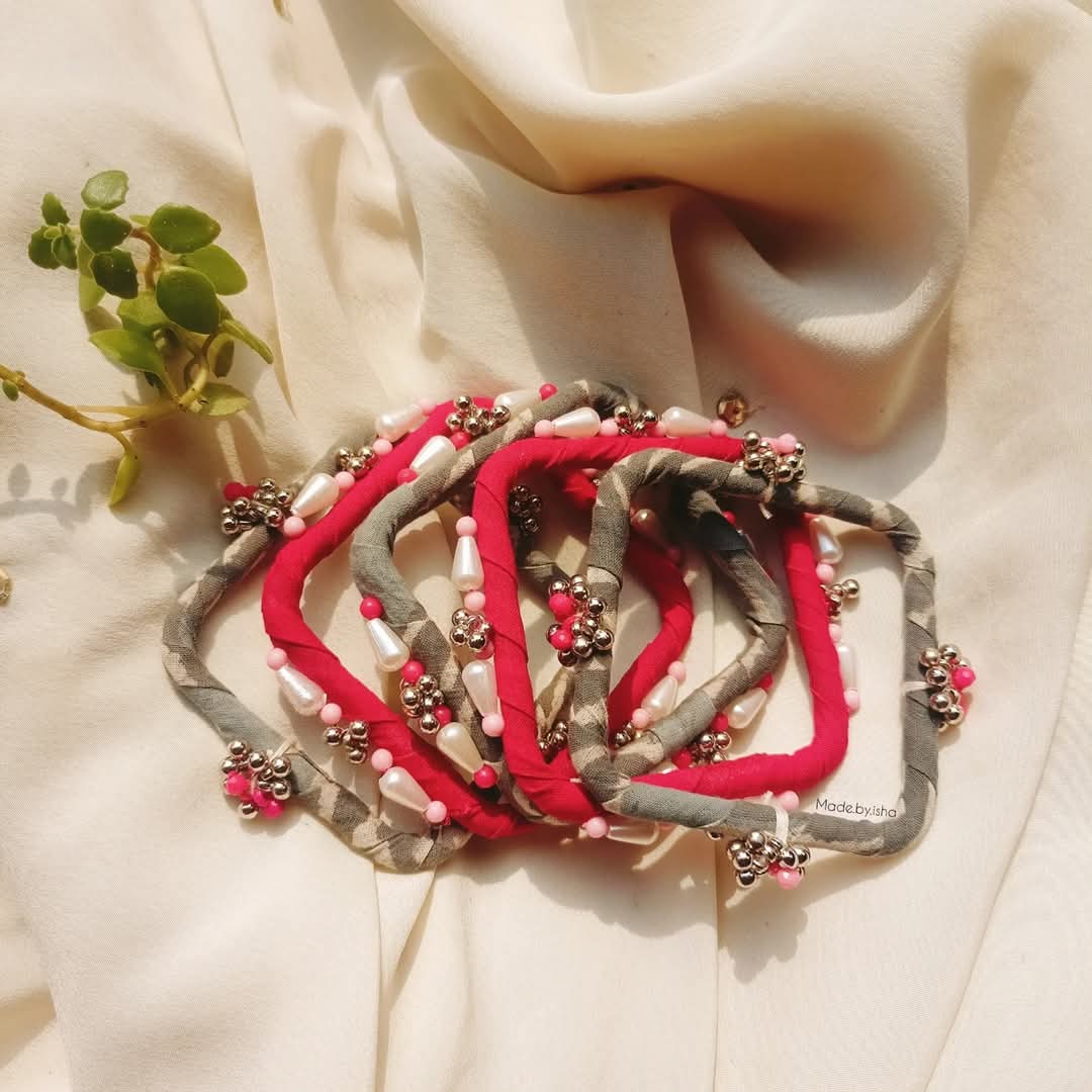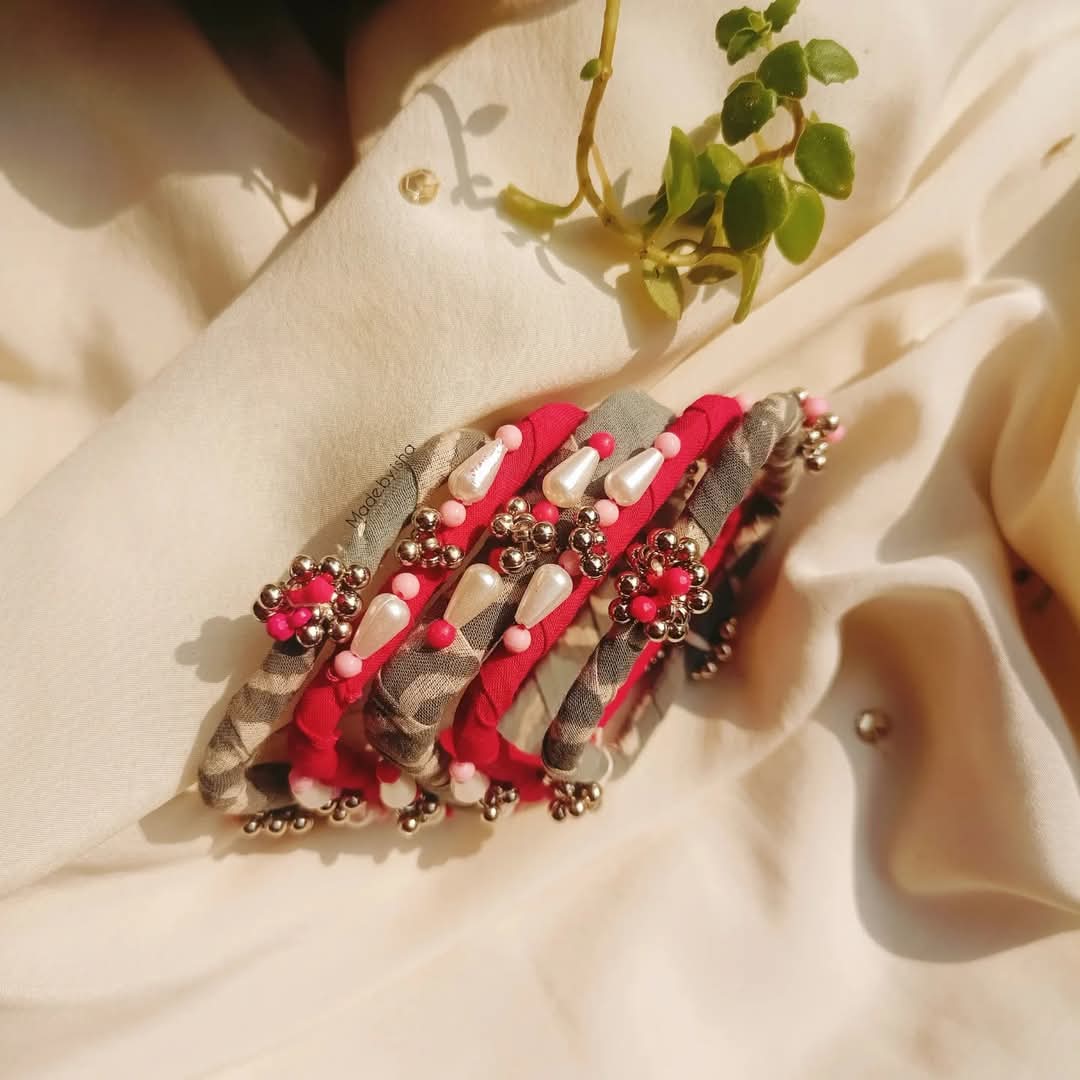 Beaded bangle set.