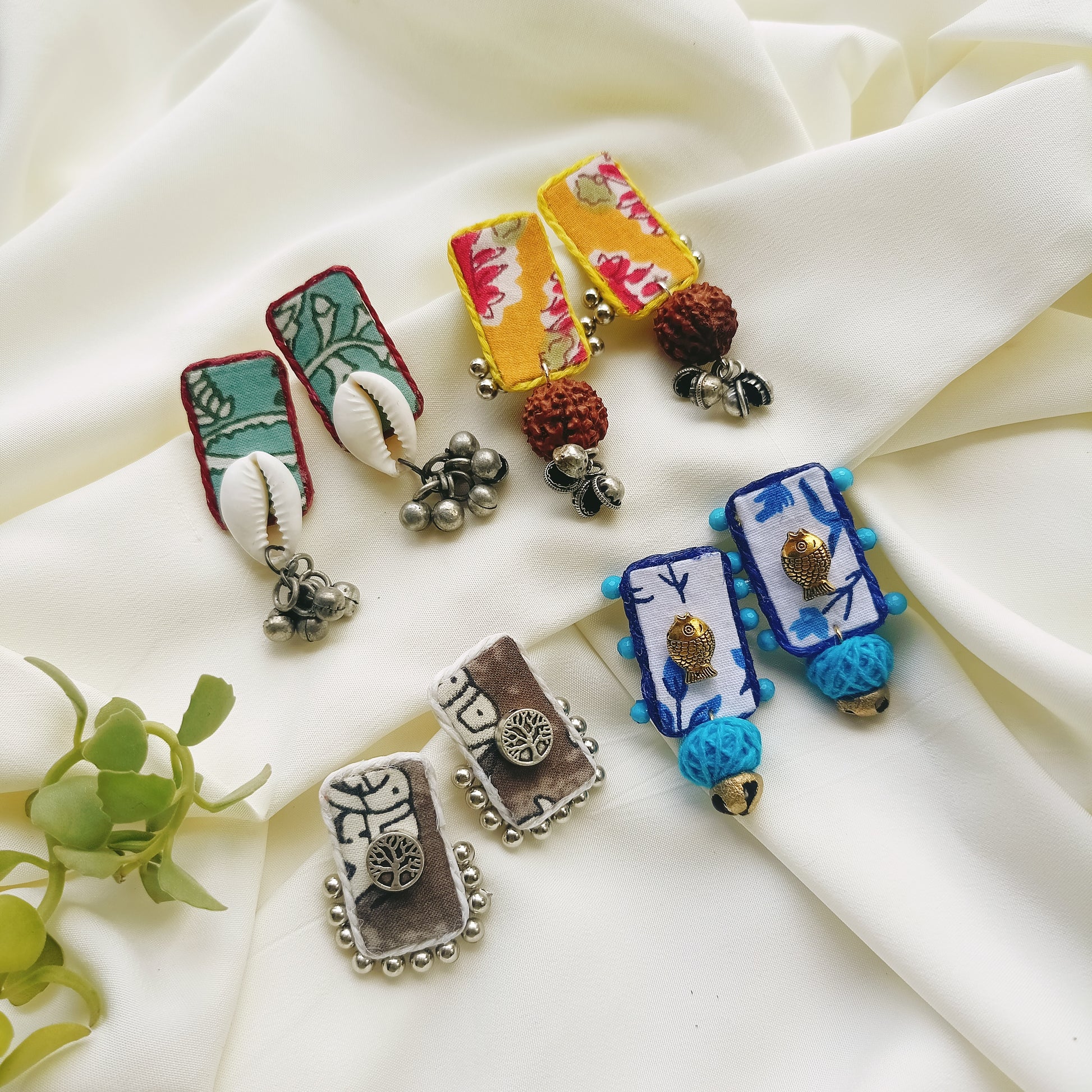 A charming mini-stack crafted from our signature fabric, adorned with delicate mini-charms and natural shells. Subtly detailed yet effortlessly simple, it adds a touch of artisanal elegance to any look.